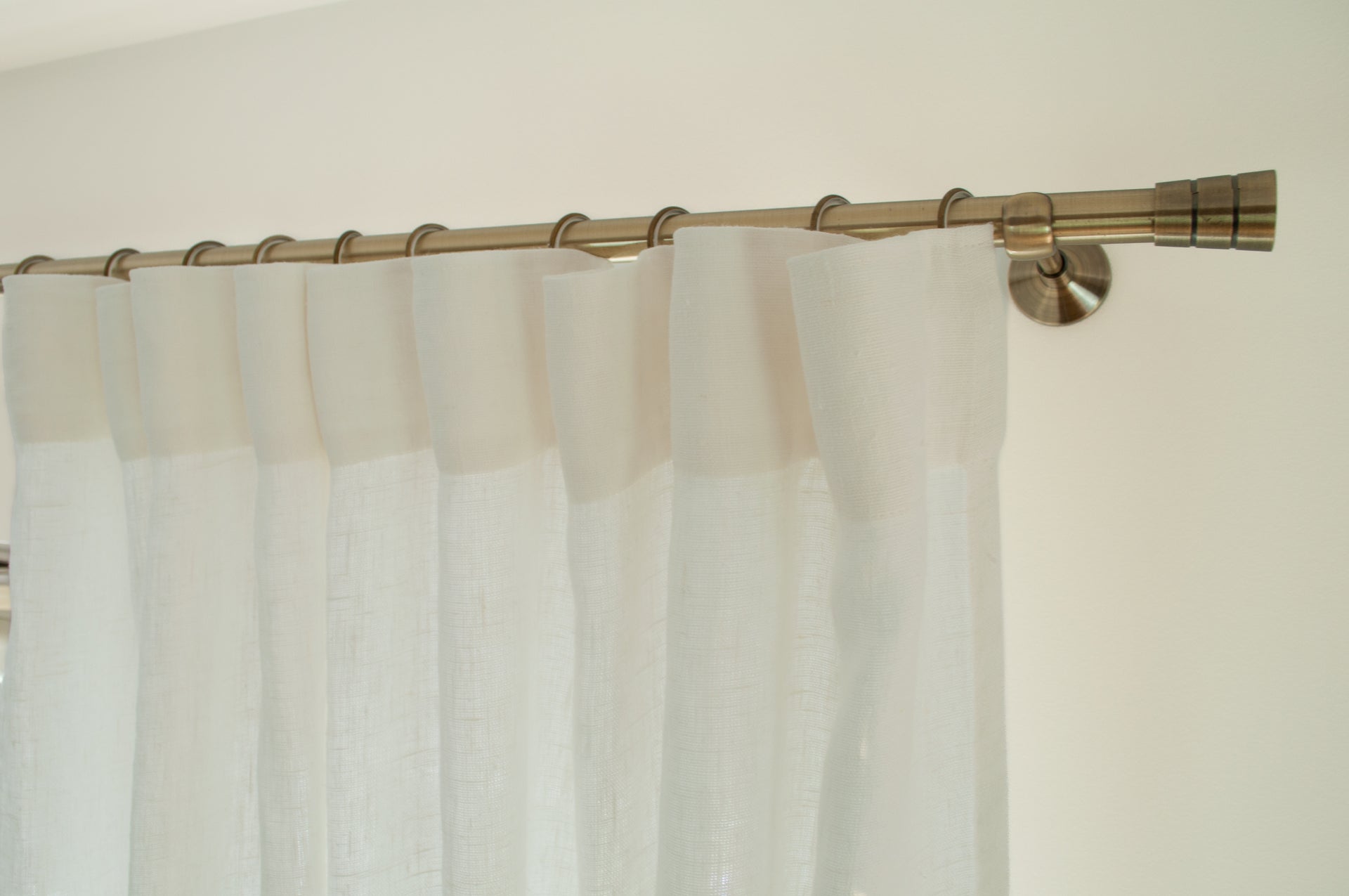 White Linen Short Bay Window Curtains - Custom Width and Length