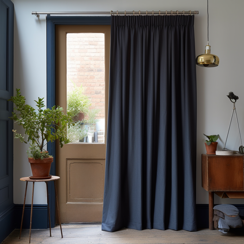 Ultra Blackout Thermal Insulated Door Curtain With Natural Heavy Weight Linen Front Layer