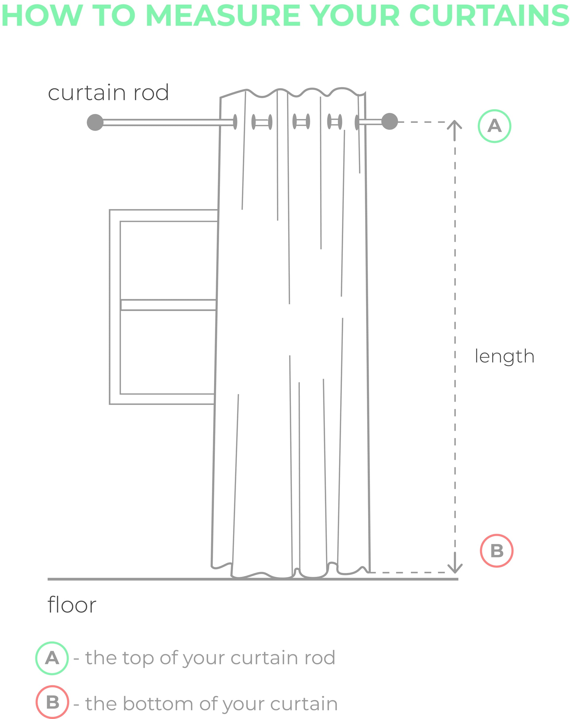 - Measure from the top of the curtain pole to the place where you wish to see the bottom of your curtain.