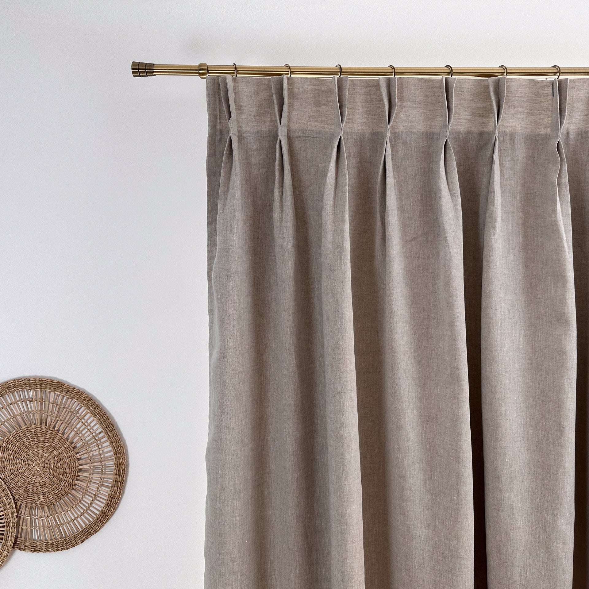Linen drapery with double pinch pleat fits modern interiors and looks especially gorgeous with floor-length curtains. Each pleat is made by hand, and the curtain is X2 times full.