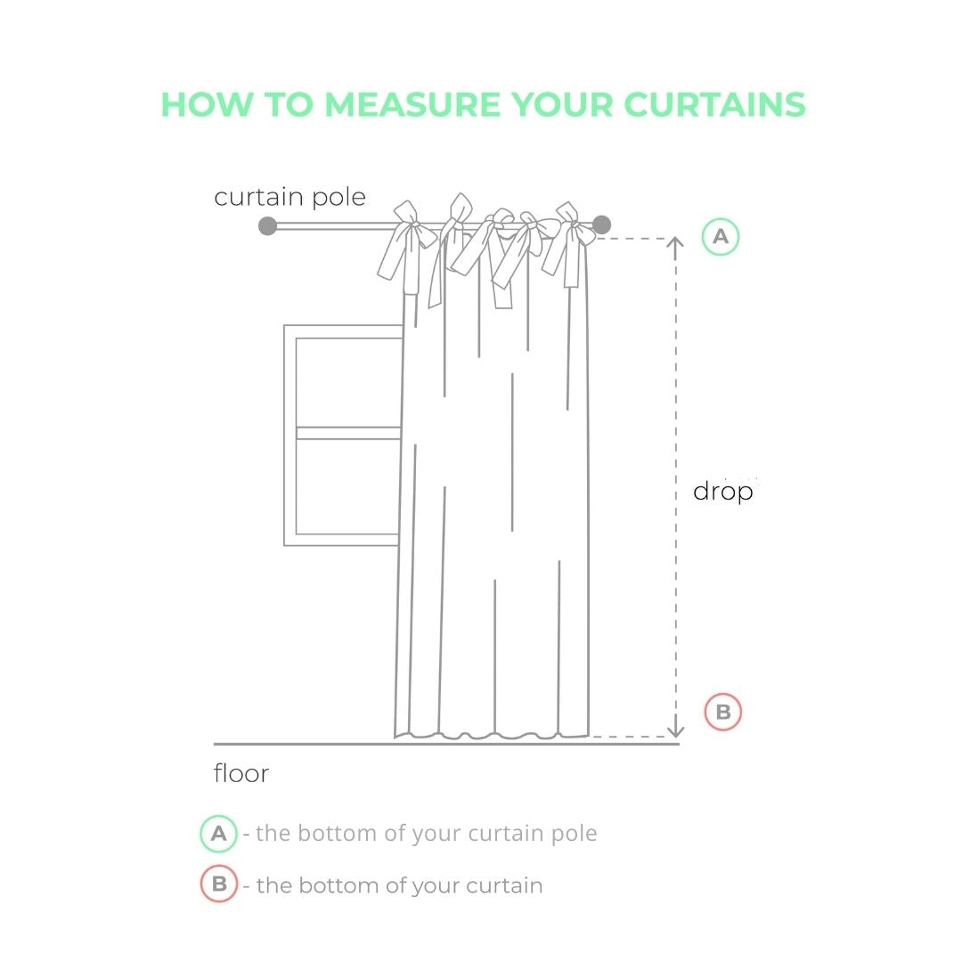 - Use a measuring tape to measure the distance from the bottom of your curtain pole to the floor (or to the place where you wish to see the bottom of the curtain)