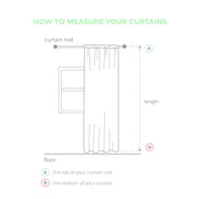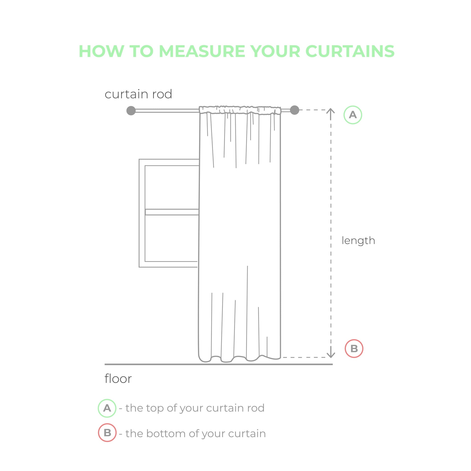 Measure from the top of the curtain rod to the place where you wish to see the bottom of your curtain. - Measuring for the width: