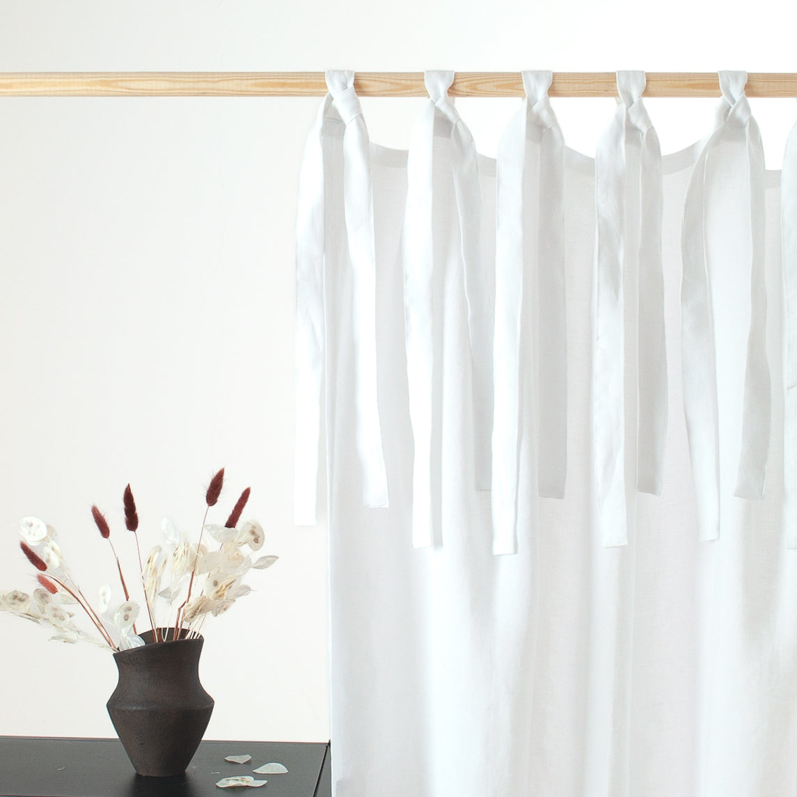 100% Natural Linen Top Tie Curtain Panel - 124, 138 or 250 cm Width, Custom Length