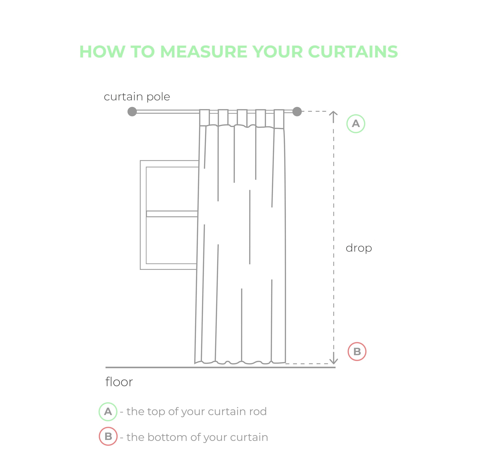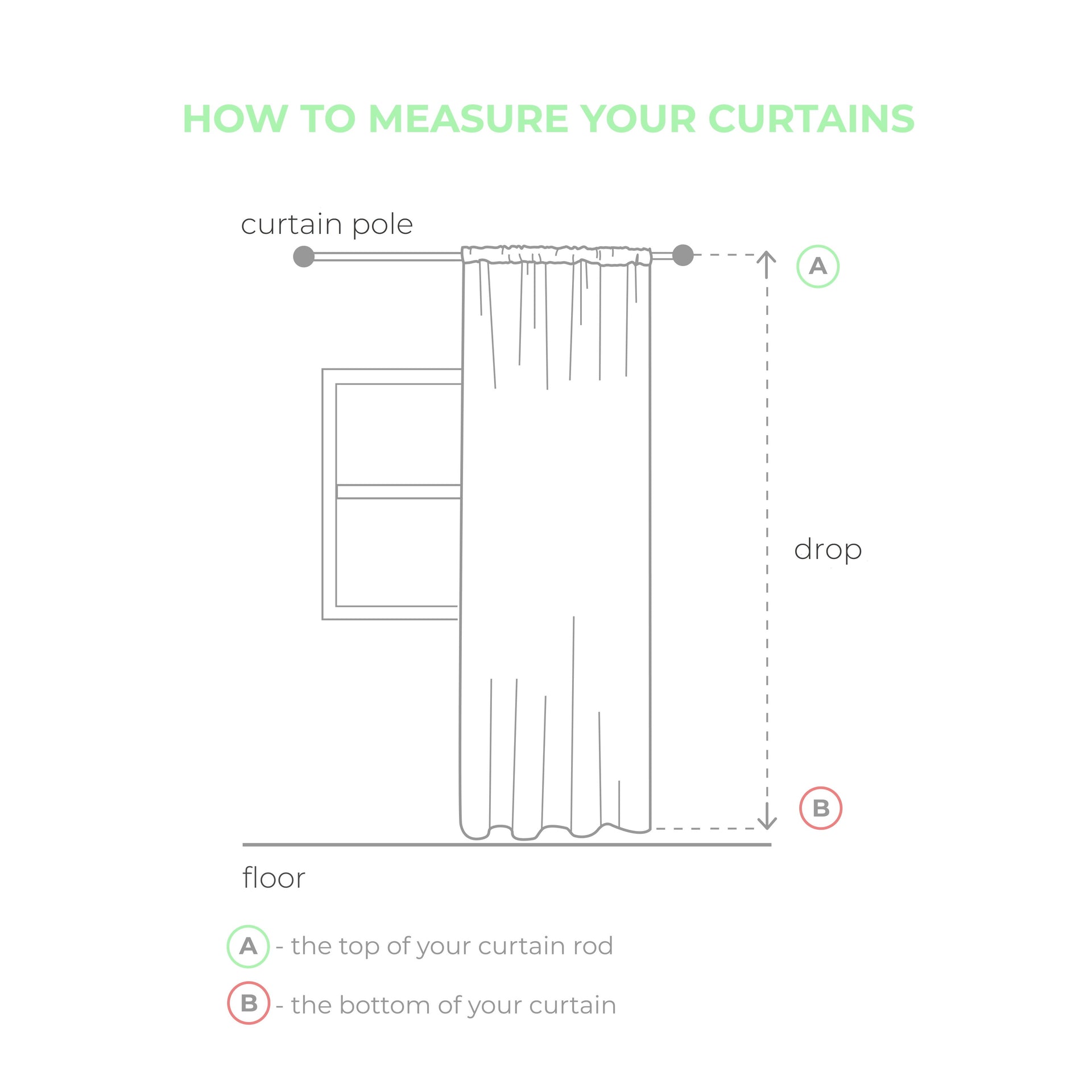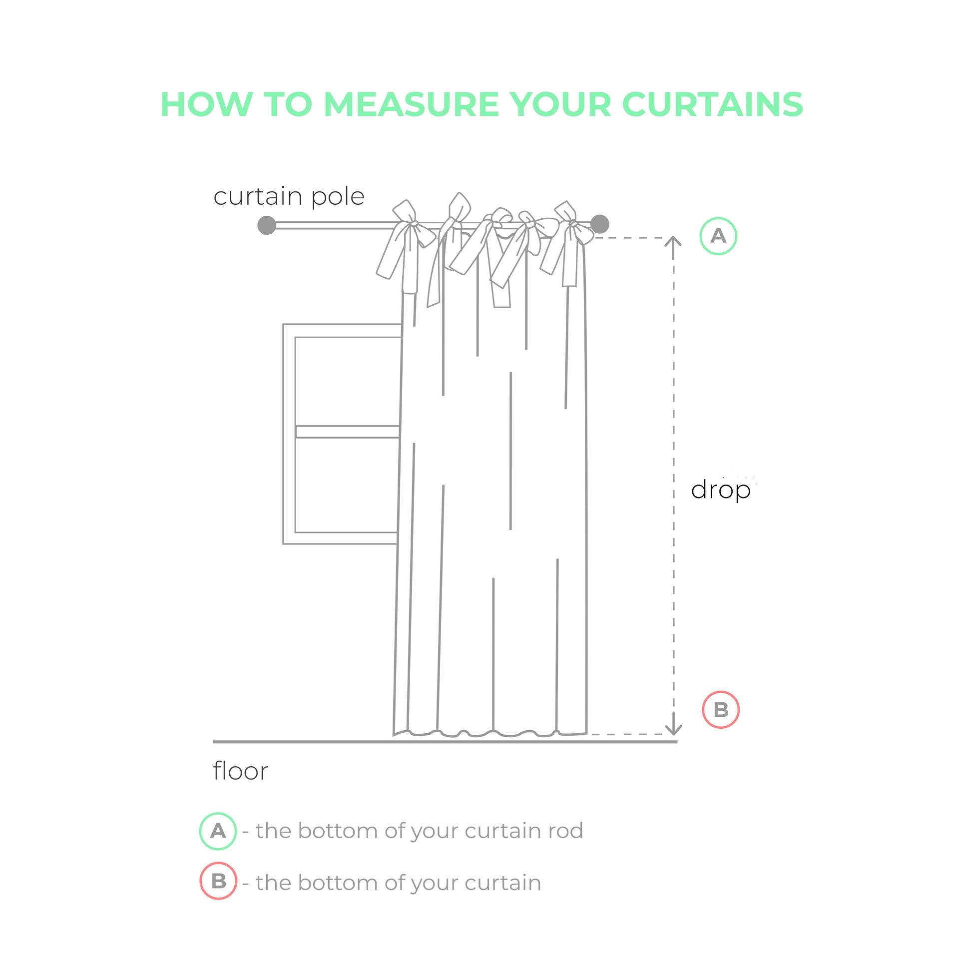 Use a measuring tape to measure the distance from the top of your curtain rod to the floor (or to the place where you wish to see the bottom of the curtain).