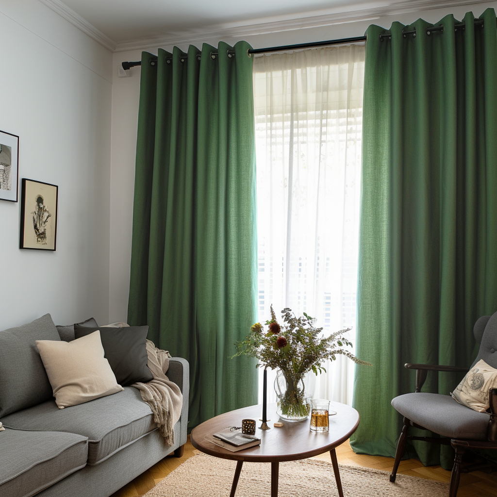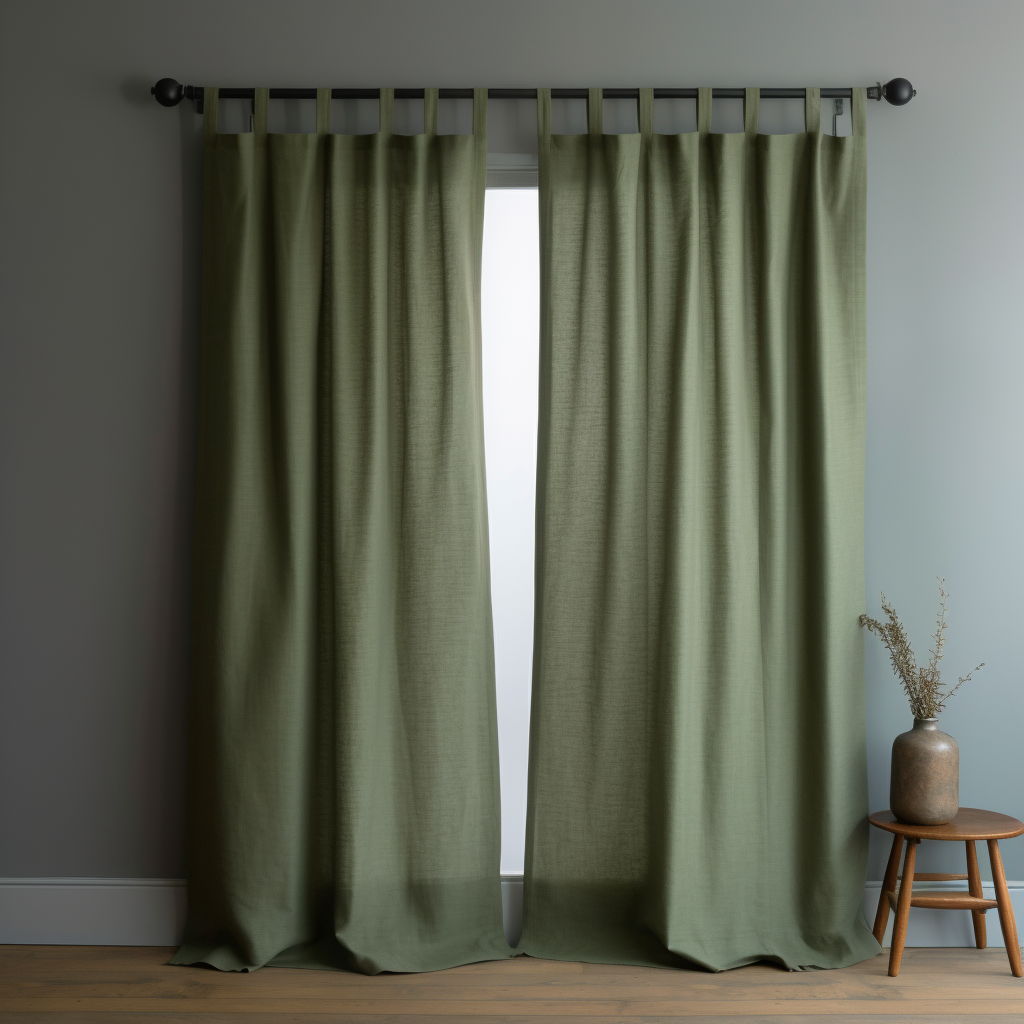 Forest Green Linen Back Tab Curtain Panel - Custom Width and Length