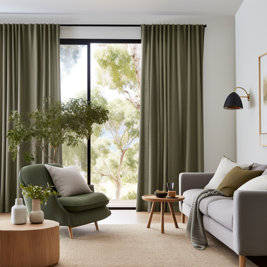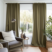 Green Soundproof Linen Curtains With Back Tabs