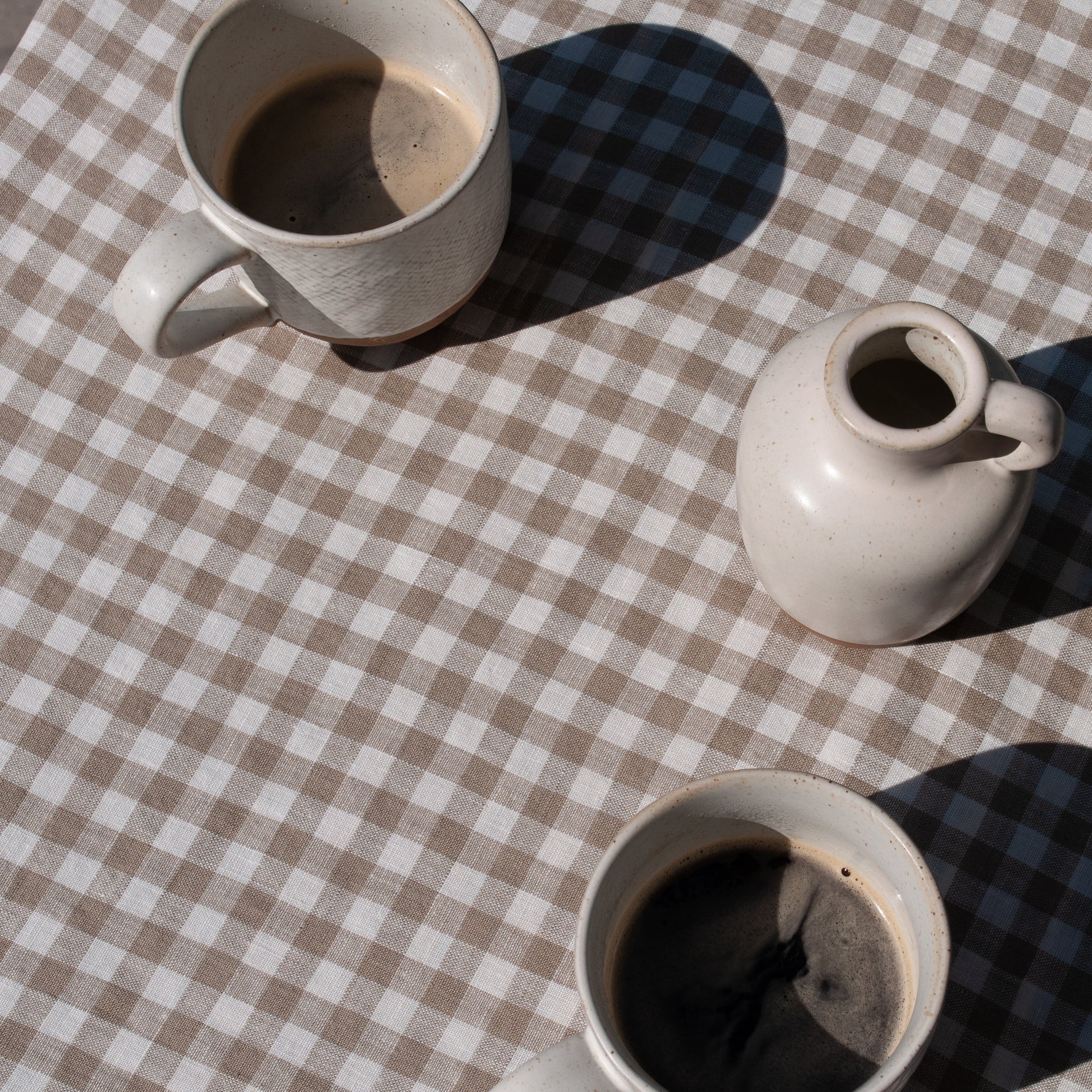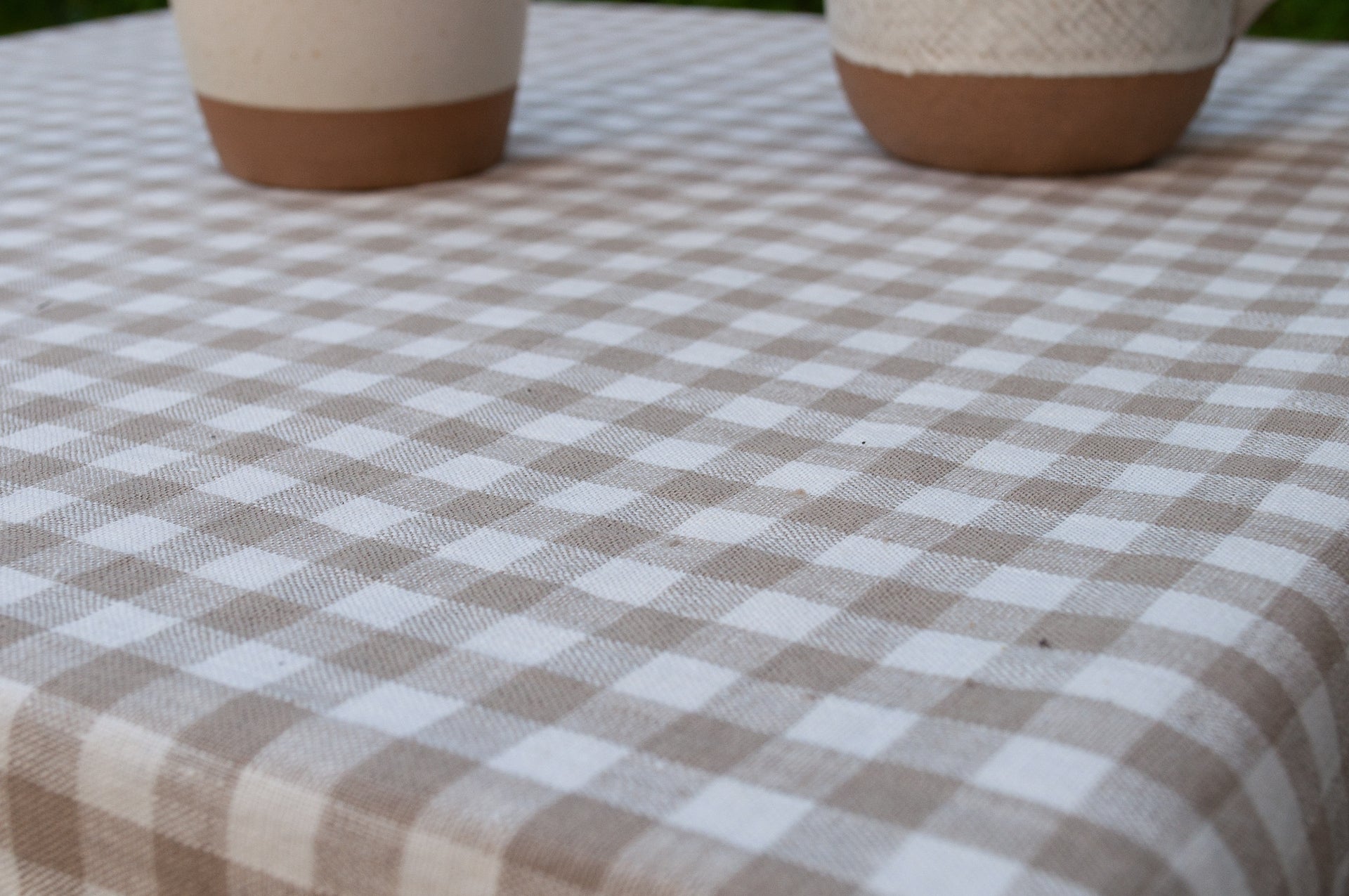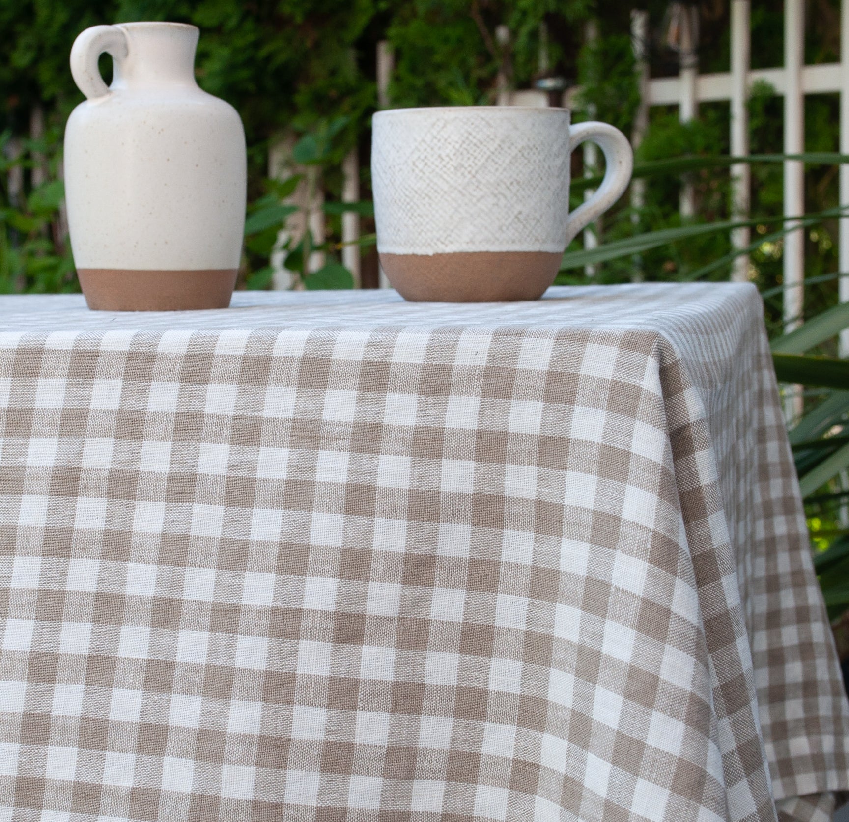 Natural Linen Plaid Tablecloth with Italian Vibe