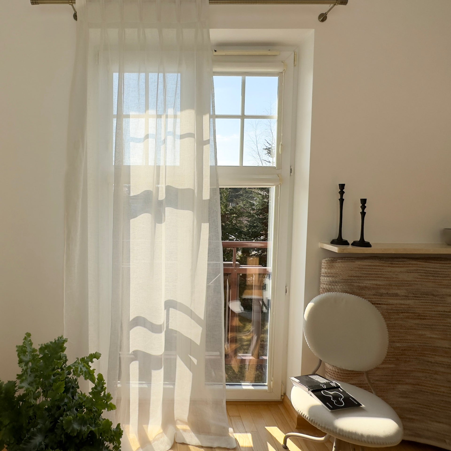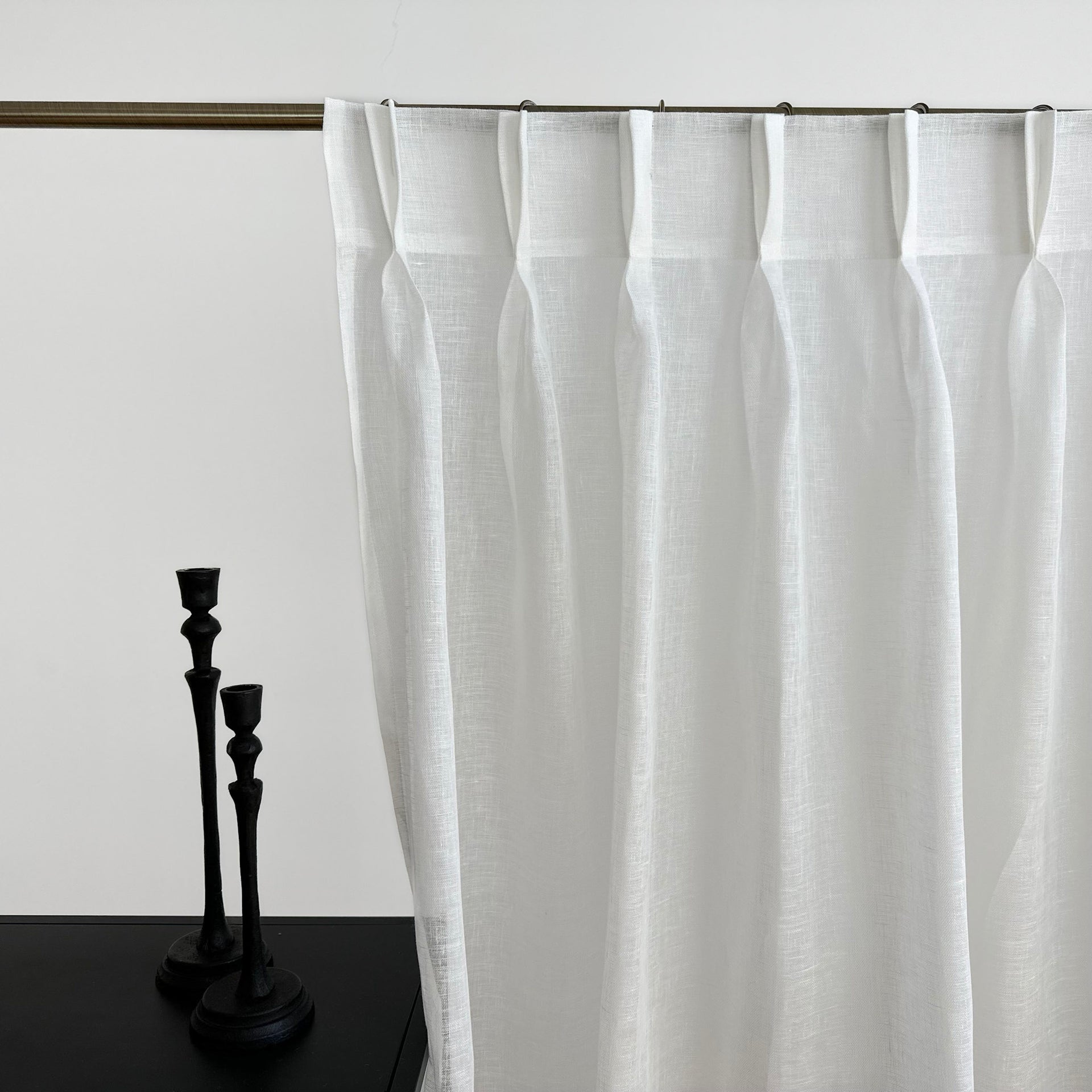 Linen drapery with double pinch pleat fits modern interiors and looks especially gorgeous with floor-length curtains. Each pleat is made by hand, and the curtain is X2 times full.